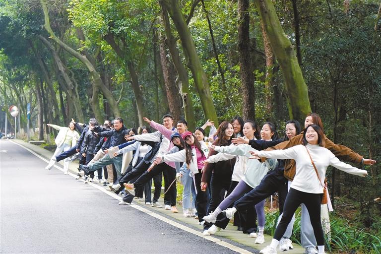 午后,队伍开启“铁山十景”打卡。穿越郁郁葱葱的森林,先到“铜锣朝天”打卡山间铜锣造型观景台;再往“草叶星空”,在铺满落叶的林间步道拍氛围感合影;接着打卡“云岭天梯”,踩着木质阶梯一路向上;最后到“峡江观景台”,俯瞰长江壮阔峡江风光。