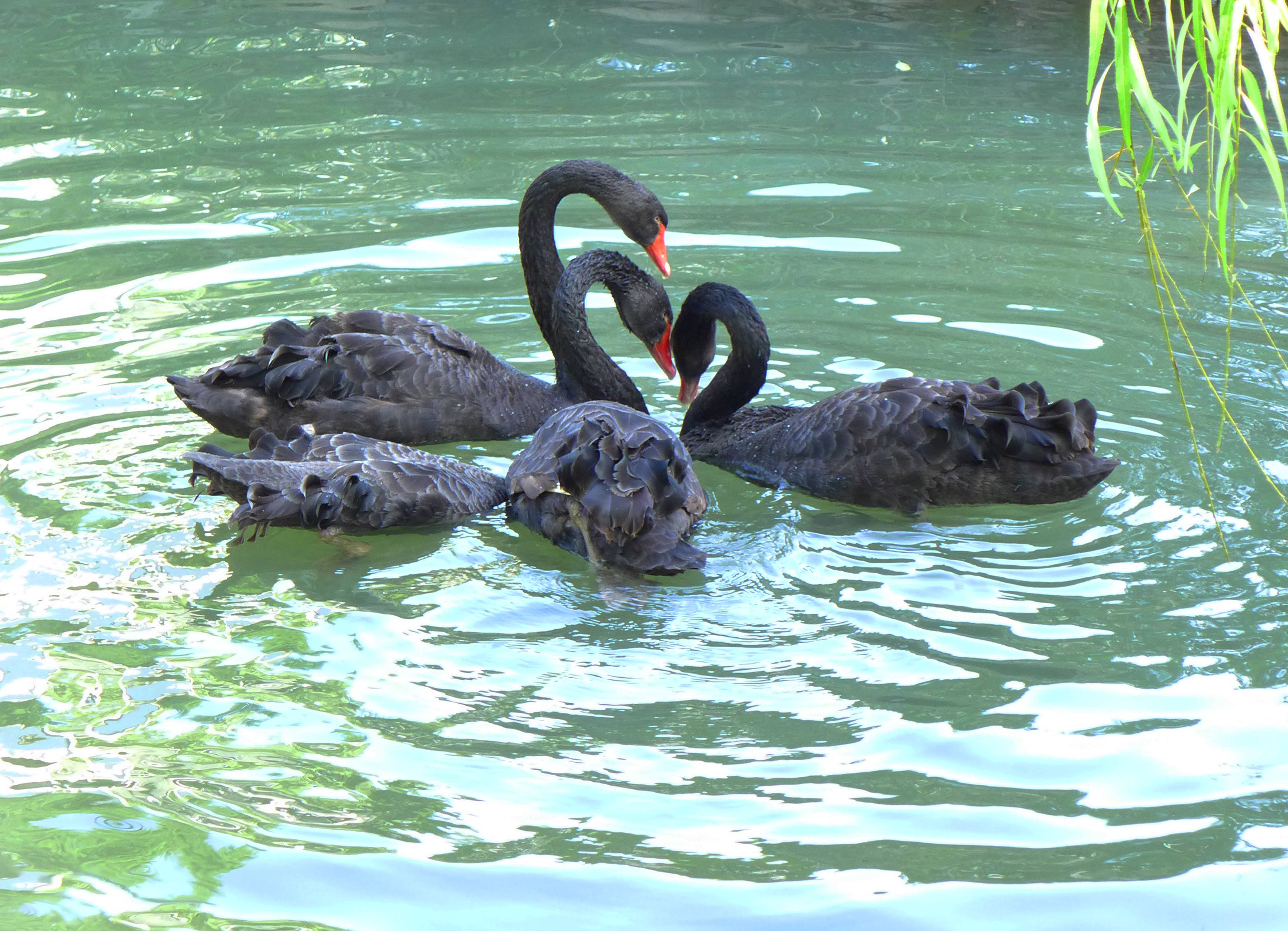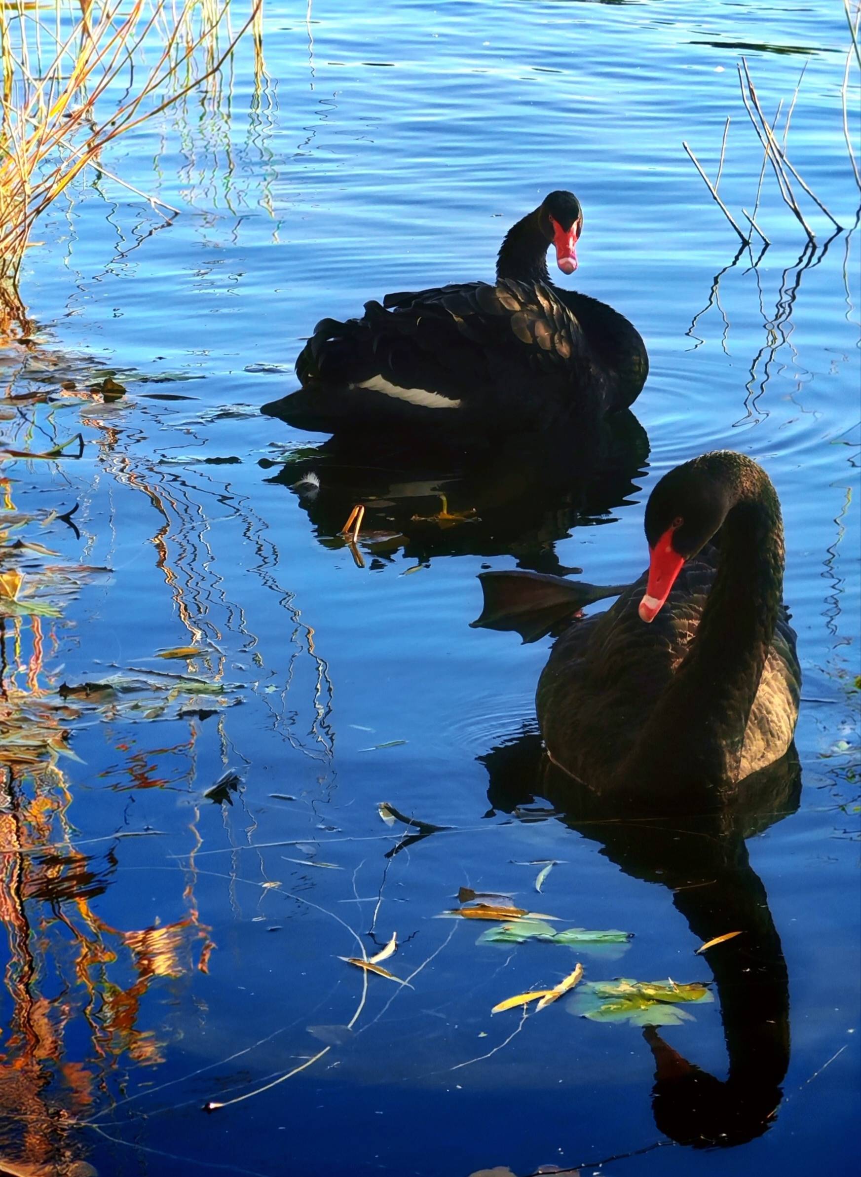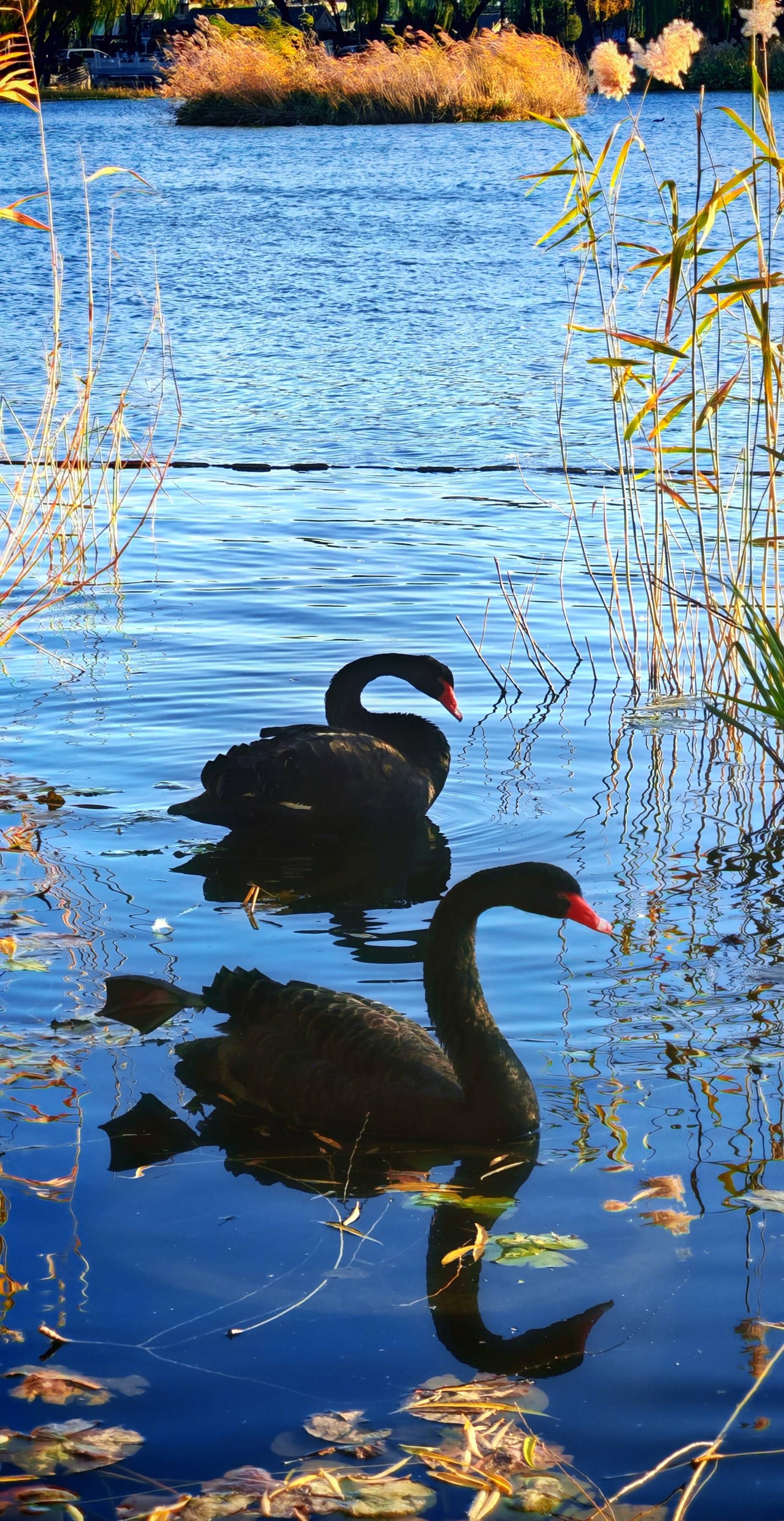 近日,多地黑天鹅结伴出行,在水中游弋、嬉戏、觅食,享受初冬时光。